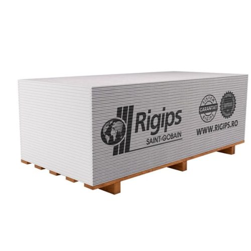 Placa gips carton Rigips RB are 12.5 mm grosime, 2.6 metri lungime si 1.2 metri latime.